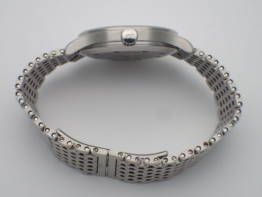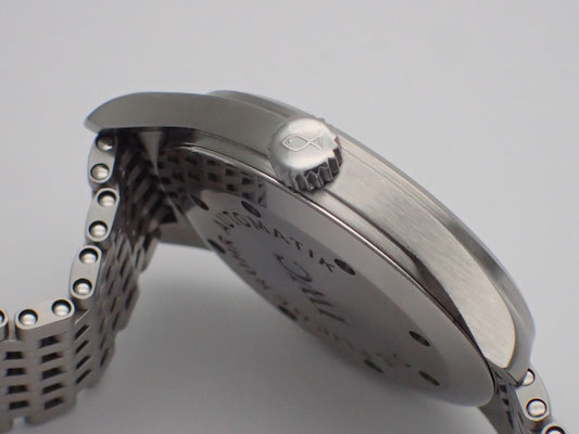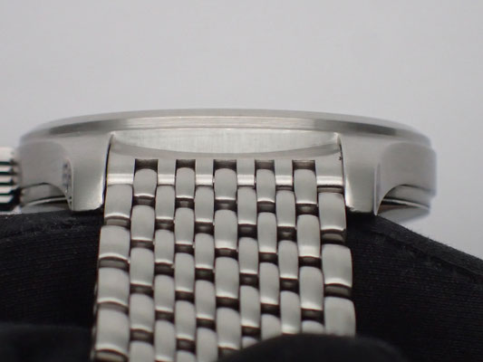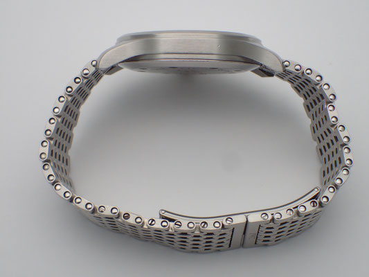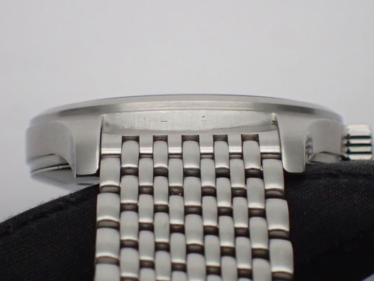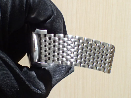 個体は美品。当店にて過去複数回販売品。外装は擦れコキズ程度でケースはとてもしっかりしている。針、文字盤はきれいで問題無し。夜光は多くのマーク15がそうであるように針夜光の方が少し濃い目のクリーム色。風防は表面にわずかに擦れ有り。貴重な11連ブレスは伸び少なく状態良好。お約束の「魚竜頭」。精度は平置きプラス約2秒と優秀。ギャランティー、冊子、純正ボックスが付属。マーク15初期「T」表記&11連ブレスは絶対数が少なく良品の入手は難しい。この機会をぜひお見逃し無く!!