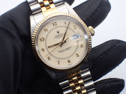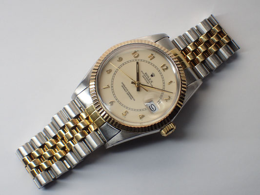 ギャラ付きのデイトジャスト・ボイラーゲージダイヤル。文字盤の経年変化は見事です。ぜひご検討ください!